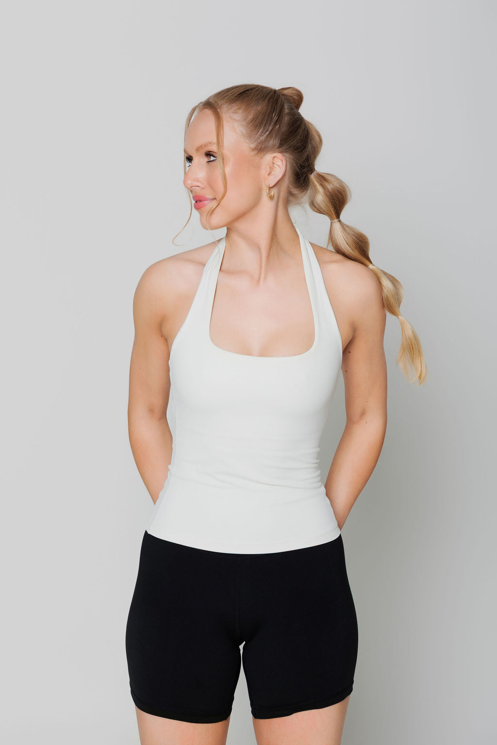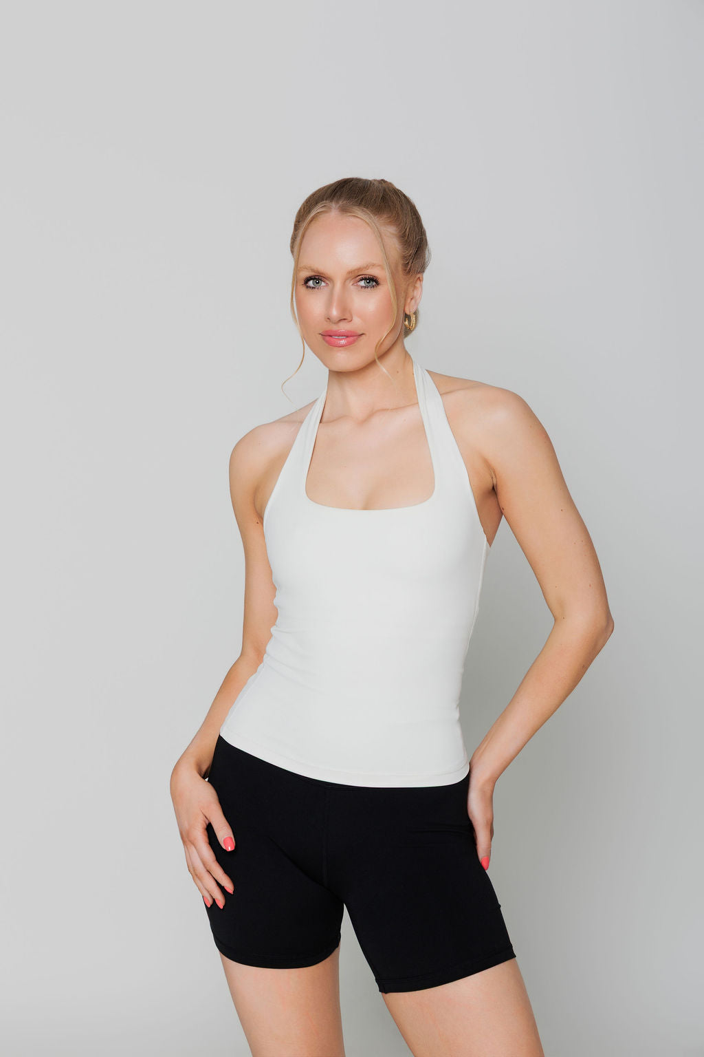 CREAM HALTERNECK TOP (WITH BUILT IN BRA)