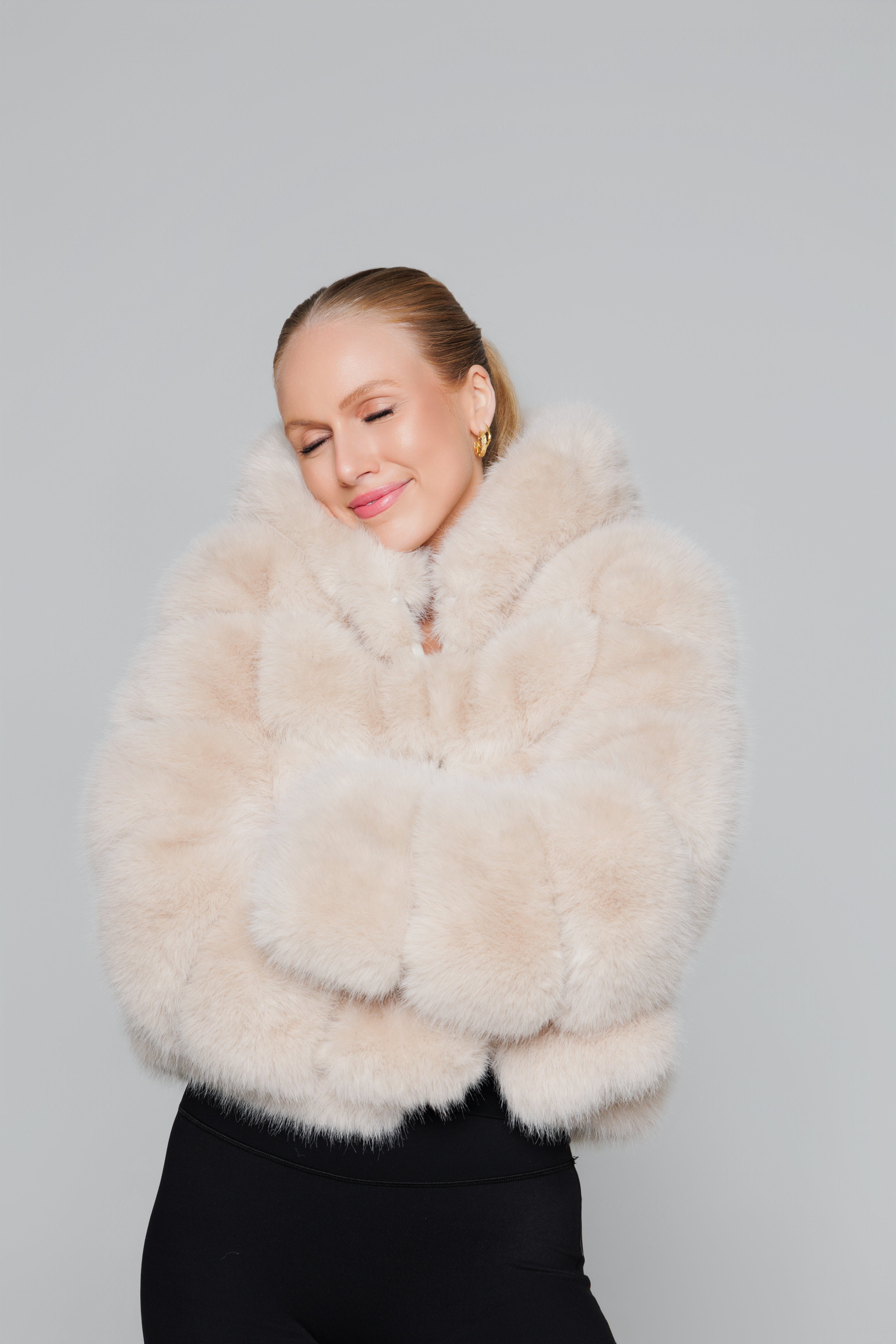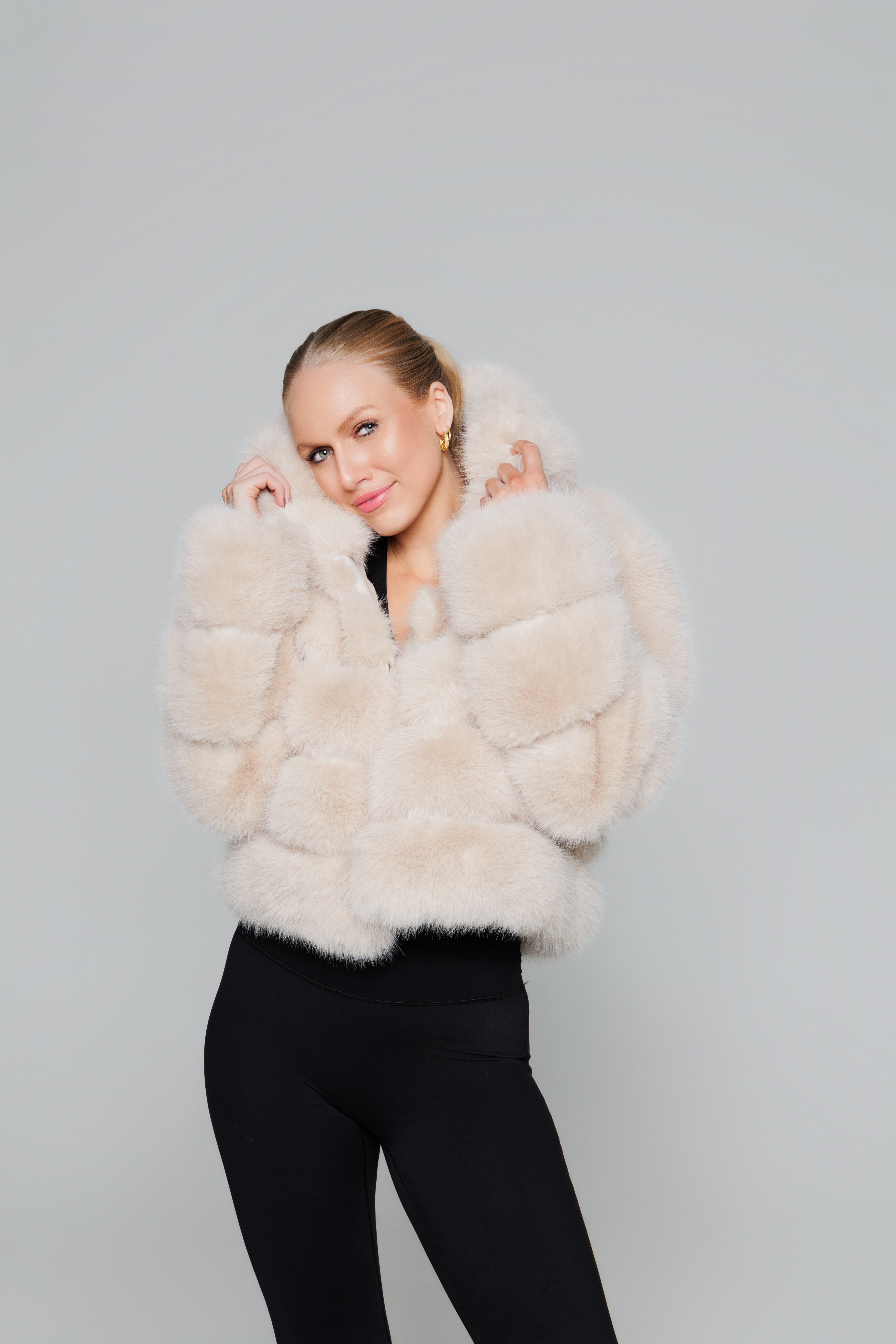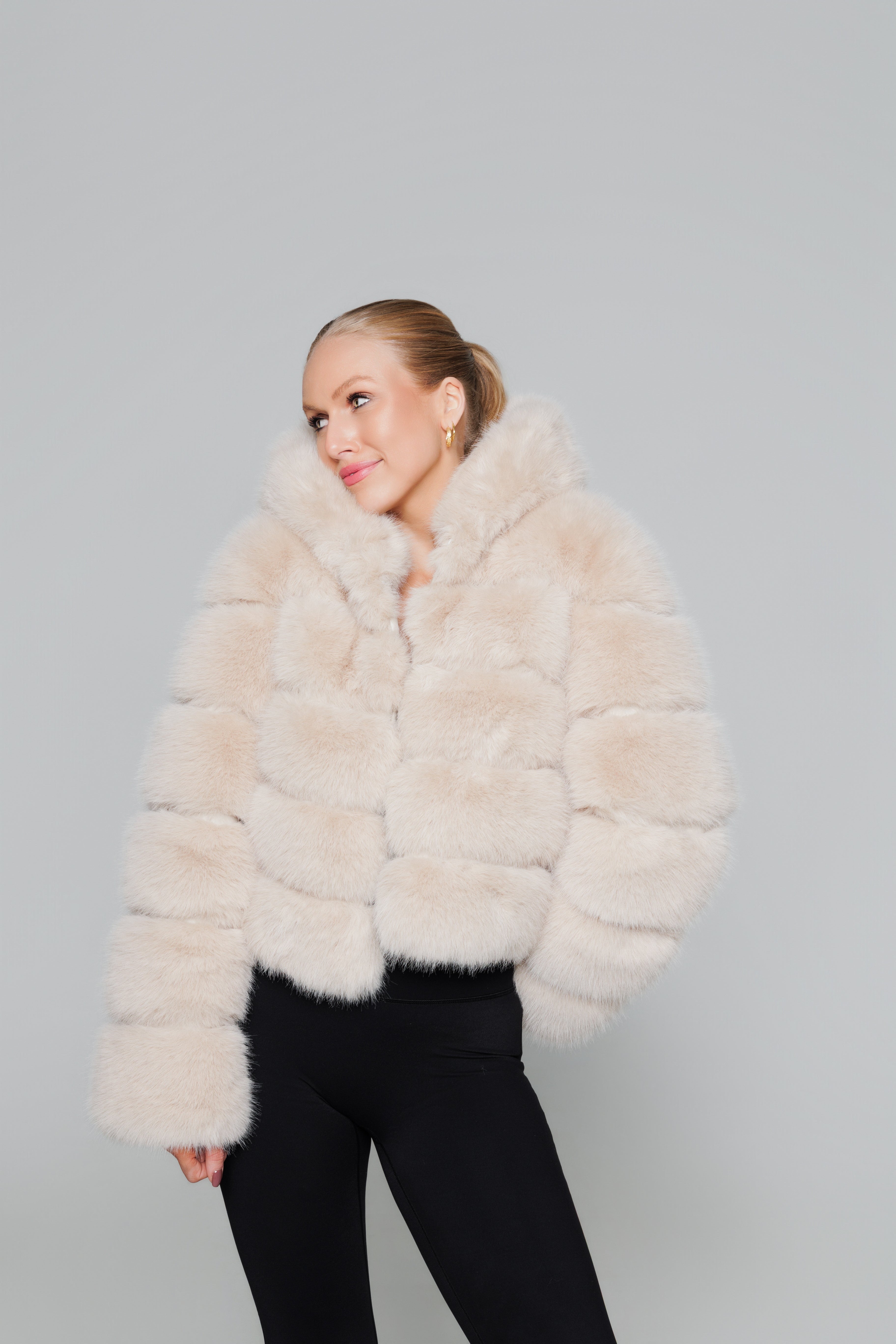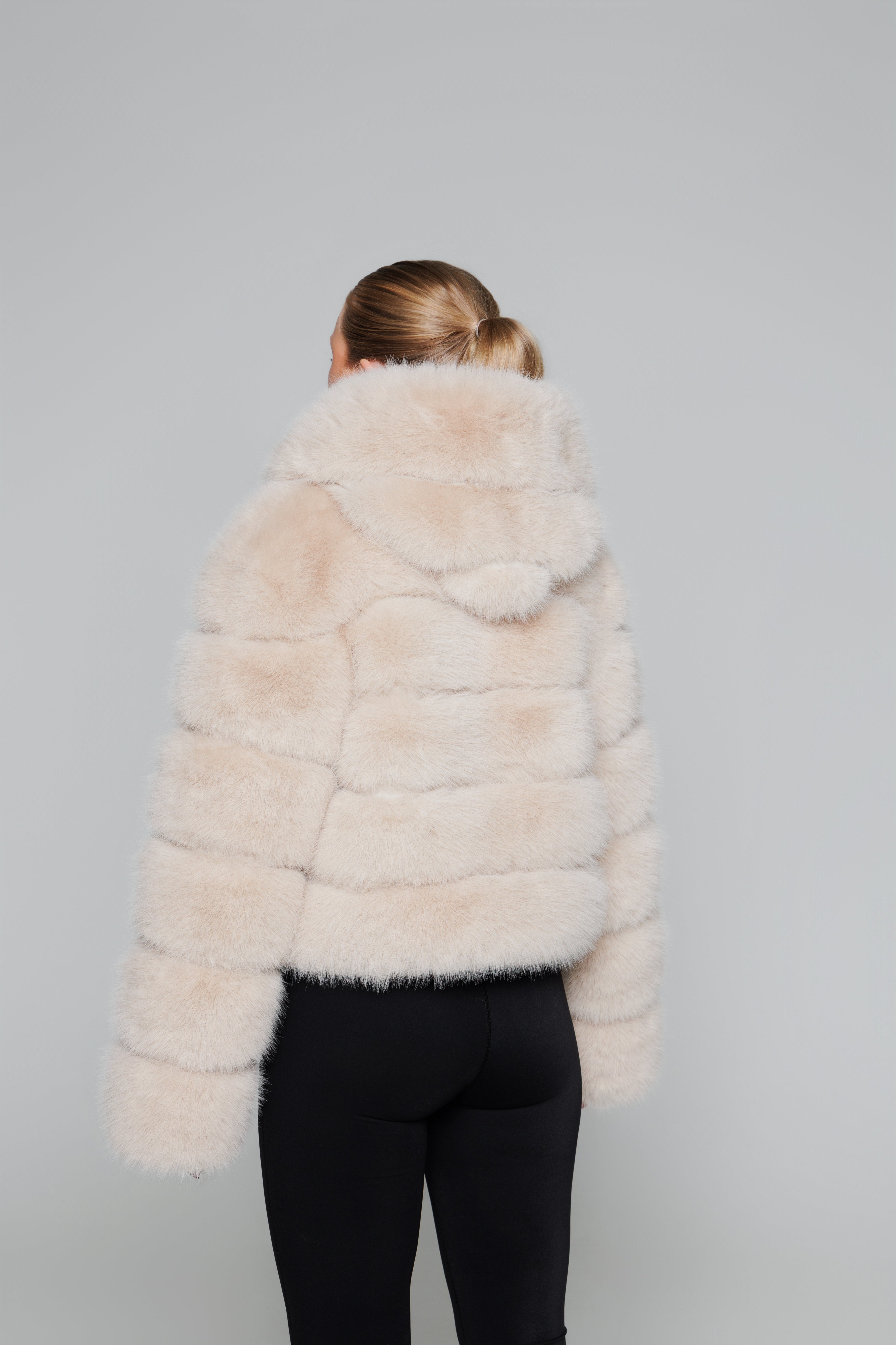 HOODED FAUX FUR JACKET - BEIGE
