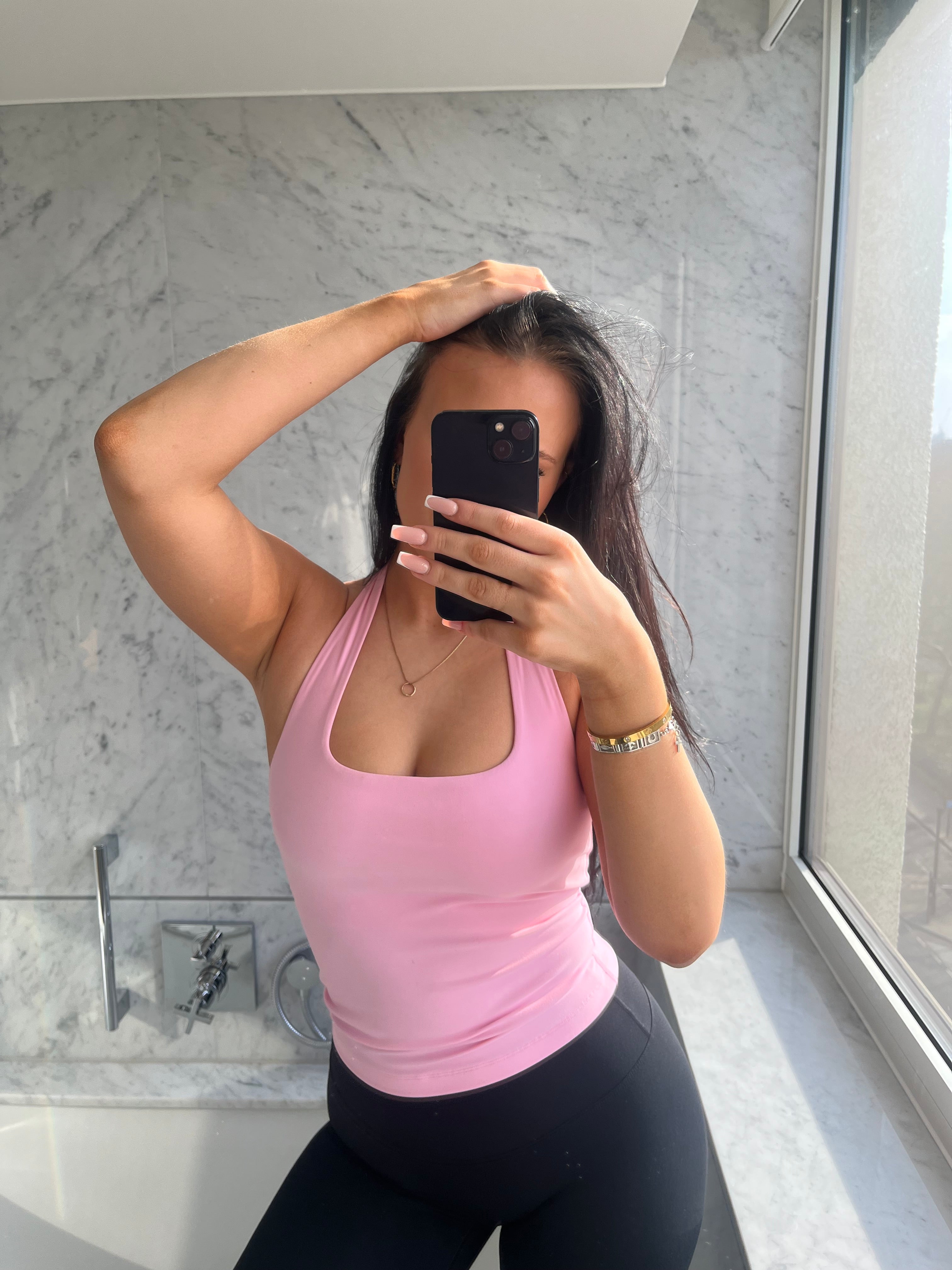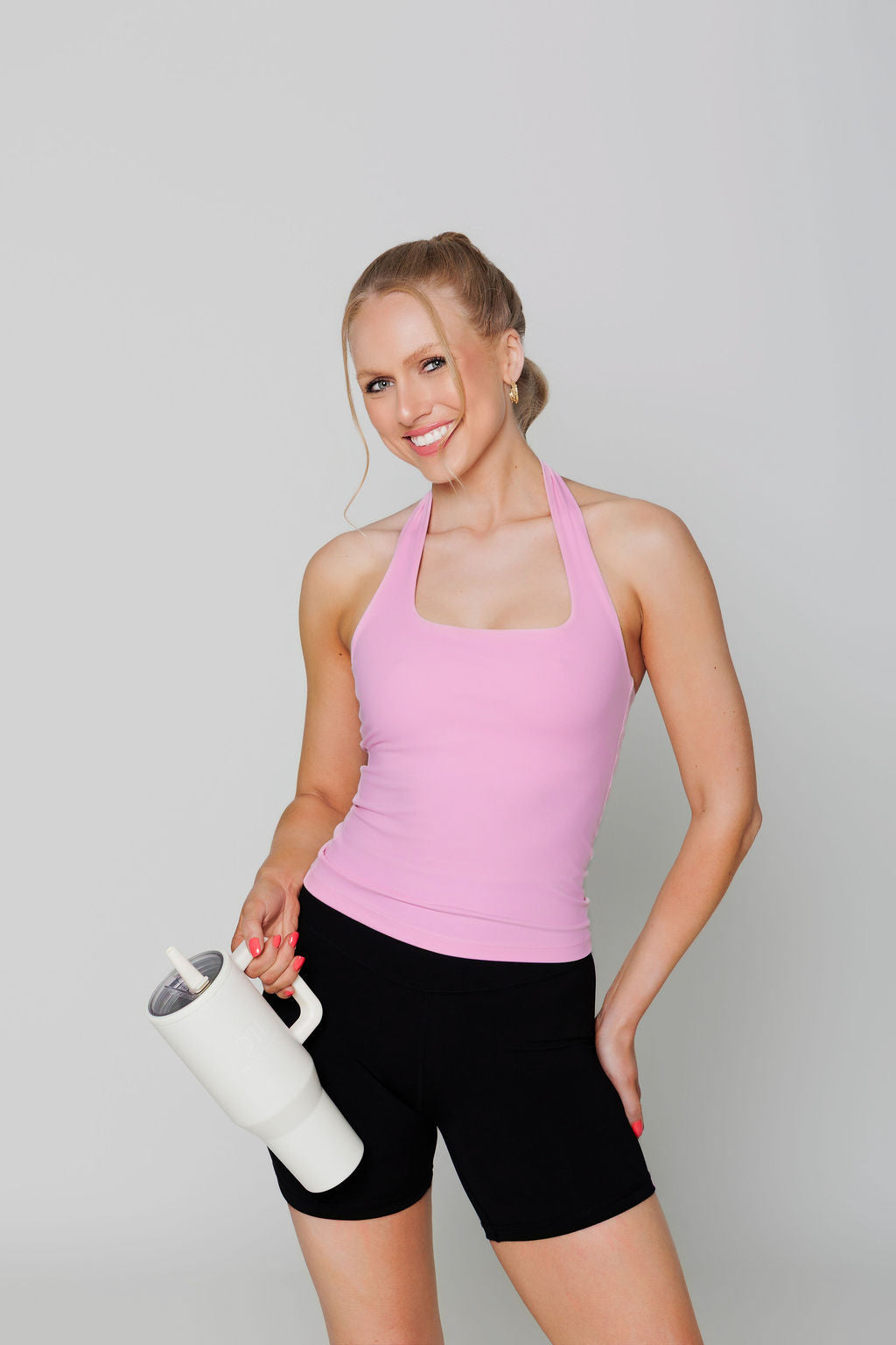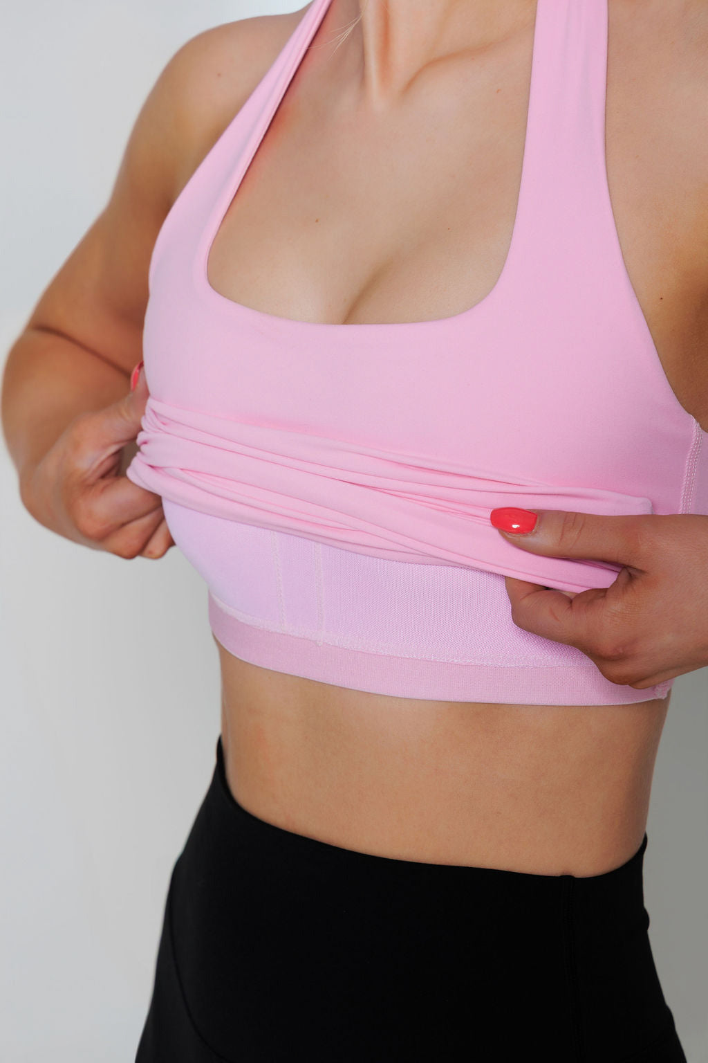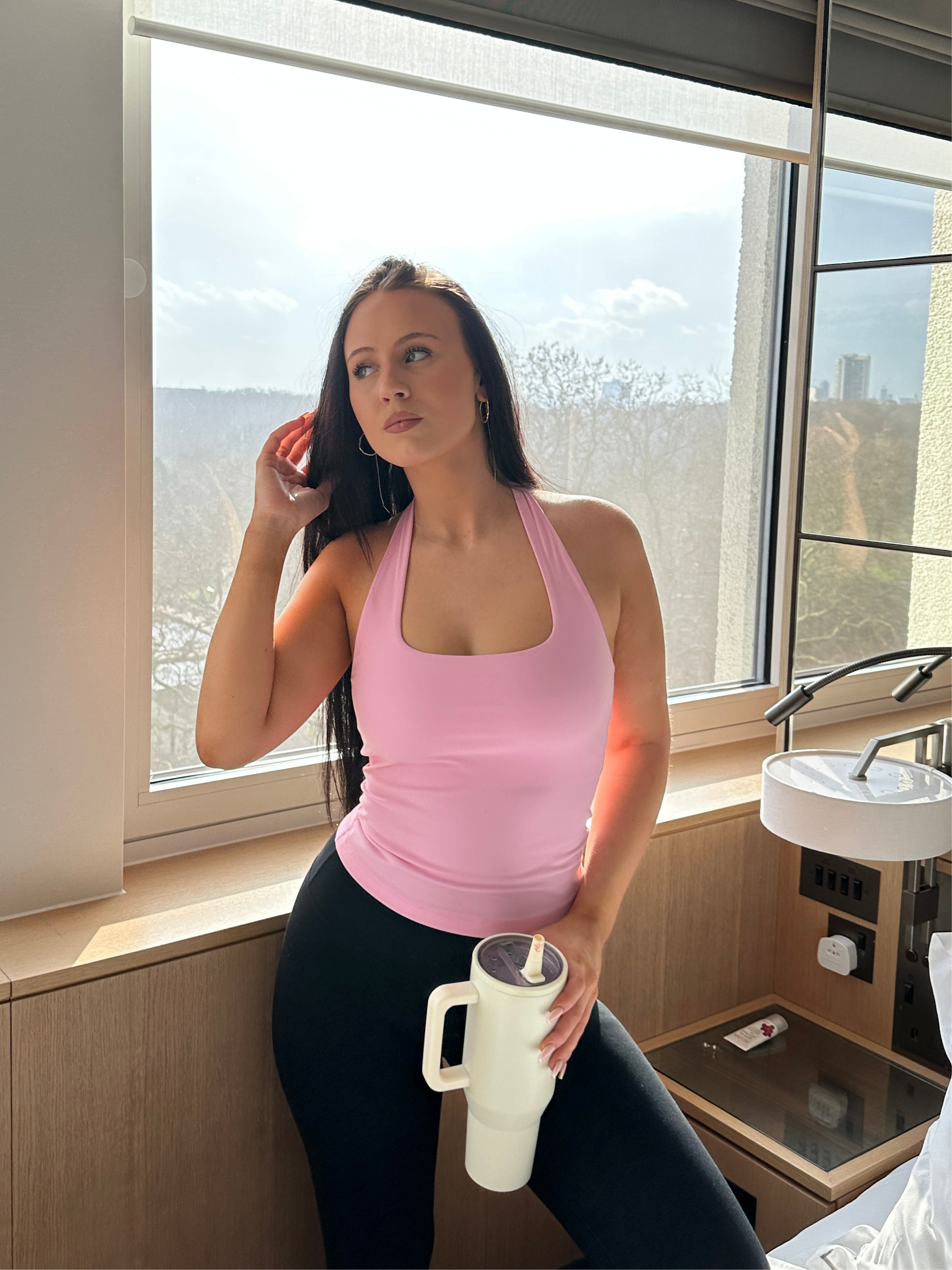 PINK HALTERNECK TOP (WITH BUILT IN BRA)