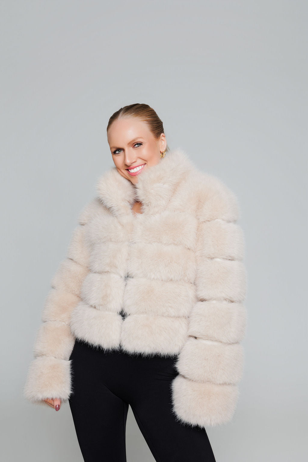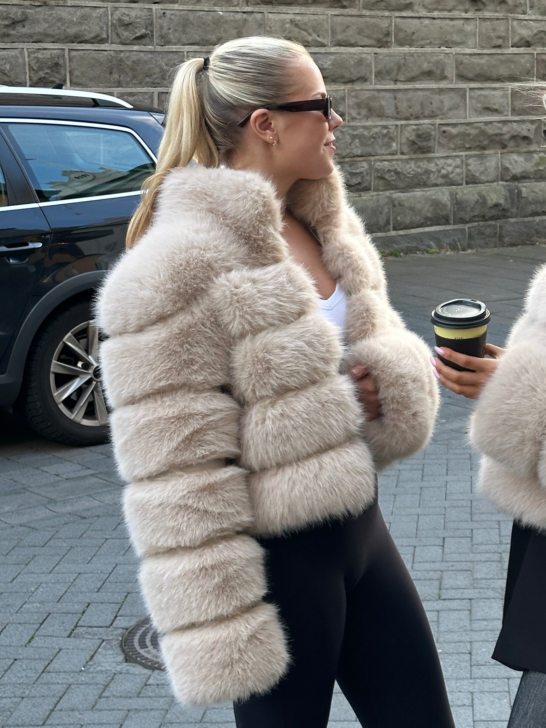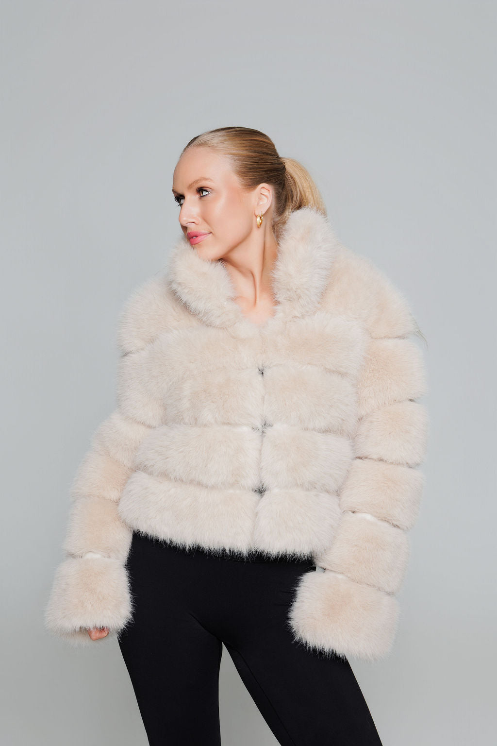 BEIGE PREMIUM FAUX FUR JACKET